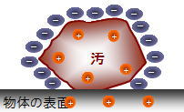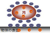 汚れと物体の表面のプラスイオンとの間に